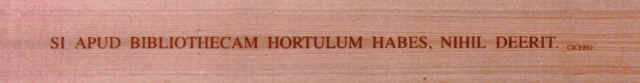 Schrift über einer 2-flügeligen Türe in Kirschbaum, in der Bibliothek: Schrift in Makore, Hintergrund Kirschbaum.
