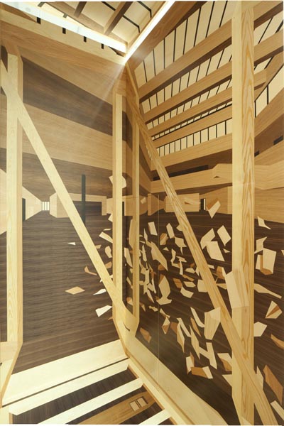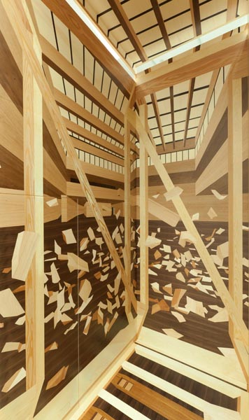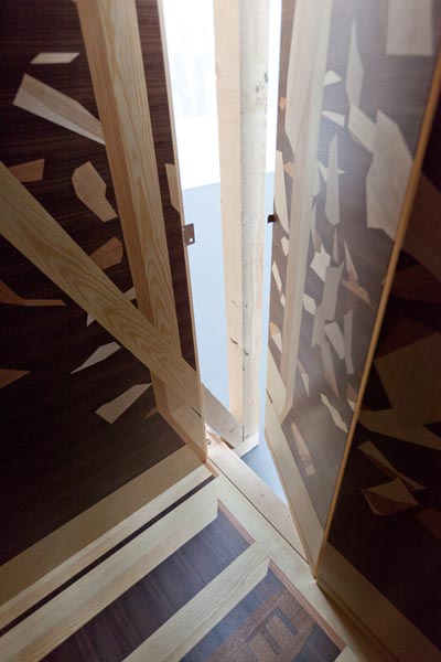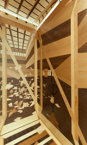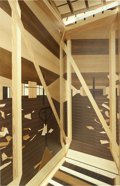 Design of the marquetry: environment you would see if the walls were transparent...plus the flying ideas (sheets) from above.
