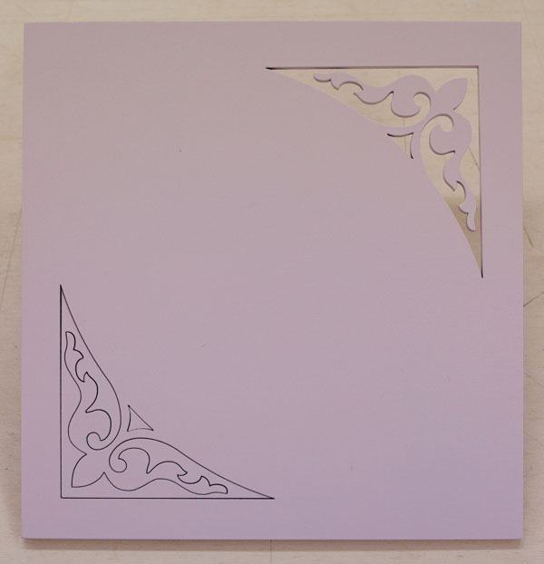 Ornament in MDF 5mm, aussen mit Aufdopplung, alles farbig lackiert