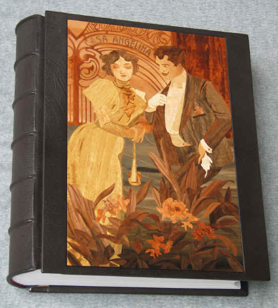 guest book wrapped in goat leather, with changeable contents with art nouveau marquetry